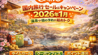 2026年1月は、じゃらんと楽天トラベルの両方で国内旅行向けのセールやキャンペーンが充実する時期です。温泉旅館や人気ホテルを中心に割引プランやクーポンが多数登場し、1月の旅行をお得に予約しやすくなります。本記事では、じゃらんと楽天トラベルの...