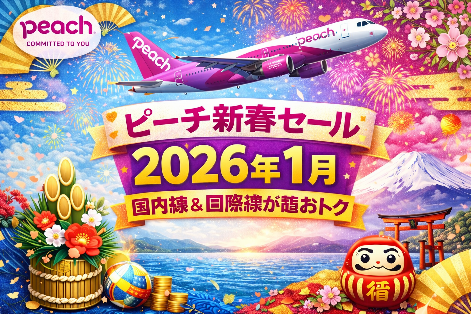 2026年1月のピーチ航空国内線セールは、新春セールとして実施されます。